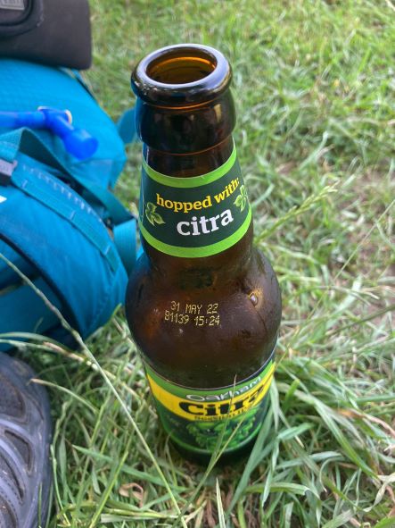 We dropped off this small but challenging hill and contoured West locating the small ford and footbridge where some welcome shade was available. Stuart proceeded to impress beyond our wildest dreams as the six-pack emerged, in a cool bag along with bar snacks and bottle opener…TOP Bloke!