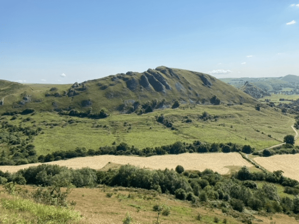 First hill done, we dropped onto the minor road for 50 metres and took the footpath towards our second objective, Chrome Hill, much to the amusement of the many sheep we encountered along the route. Halfway along, Paul decided he thought it was time to educate us on ‘string theory’???, all I could focus on was the beads of sweat running off my head, and how nice it would be if we could locate a little shade!!!