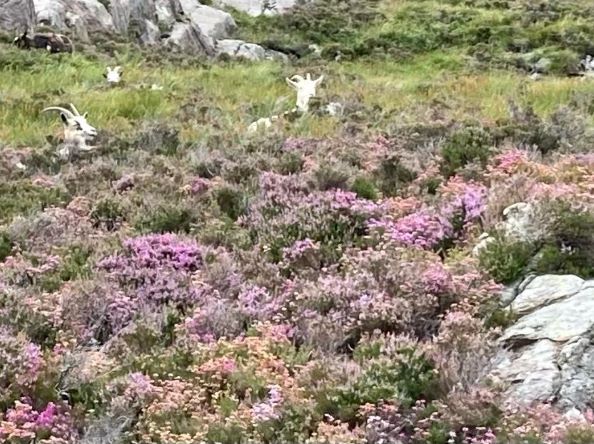 We set off along the footpath near Gwern Gof Uchaf camp site and were soon heading south over Tryfan Bach towards our route along the Heather Terrace. It was good to be out, the air was fresh, probably helped by a strong breeze blowing through the valley even at this low level. Heather Terrace was stunningly beautiful with the abundance of purple heather everywhere, we even encountered a couple of feral goats along the way.