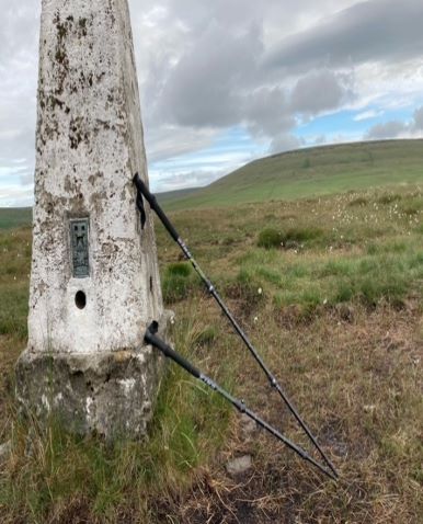 Next check point to locate was the trig pillar on Hey Edge, always a source of fun and entertainment, a little trigonometry later (sorry about that!) assisted by the wonderful Mountain King Walking poles and the compulsory shot of my Scarpa Boots, its time to press on and capture a few more views and small Vlogs as I travel across Westend Moss, to White low.