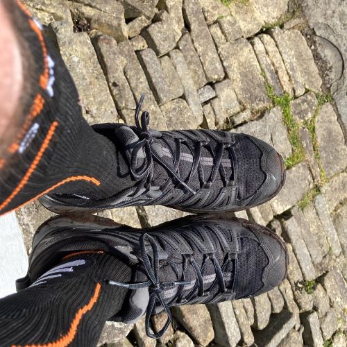 Nothing unusual you might think, but for those that know me (creature of habit that I am) I always wear boots when on the hills as I like the security of the supported ankle, hence the eagerness to ‘test drive’ these new rascals in a ‘live’ environment.