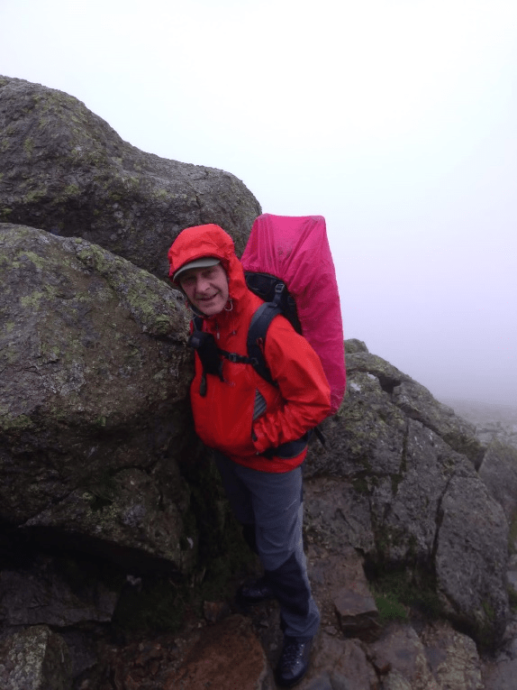 Executive decision time, given the challenging conditions, the visibility and the relentless pounding from the wind and rain, I decided that we would ‘bale out’ and exit the Mountain via the most direct route, so off we set.