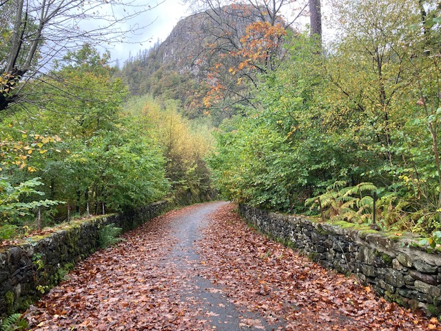 An easy wander out onto the little track at the back of the premises lead us along the lake to take us around Great How and on to the small road at the end of the lake.