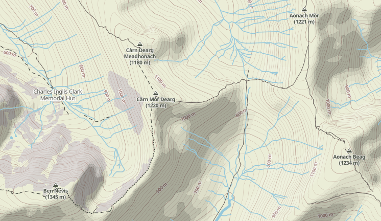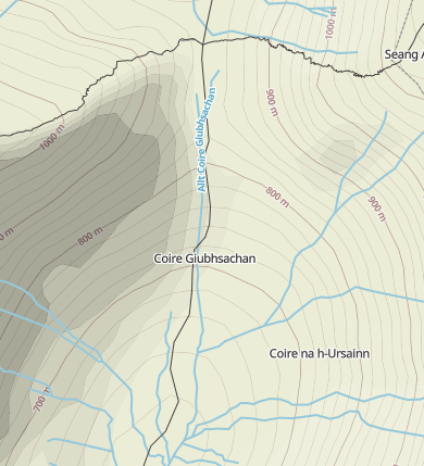 We had switched from our usual map of choice, the OS Explorer 1:25.000 to Harveys as this highlighted a neat little track alongside the stream ‘Allt Coire Ghiuthsachan’, which was most helpful.