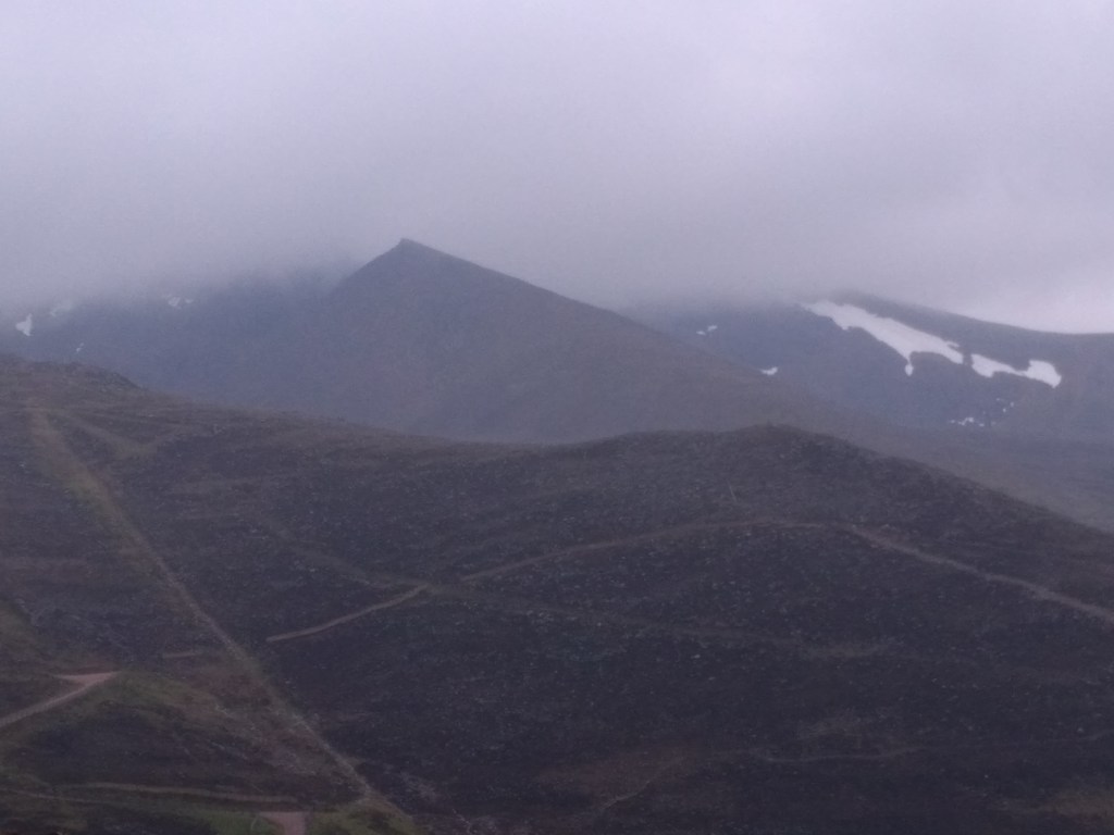 We trudged our way up the small path adjacent to the Funicular railway until we got to the Ptarmigan station, where we were both pleased to shed the load for a minute to grab a drink and a small snack. By now though, the weather had turned shitty on us (as Peter Kay would say it was that fine rain that gets you wet!)