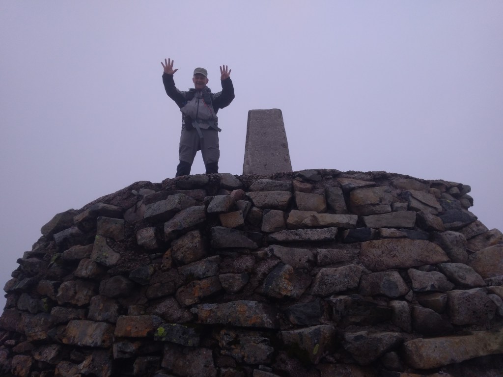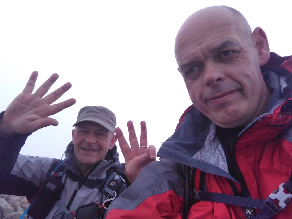 The day prior, the views on the top had been spectacular, today however was to be the opposite, we were in the ‘clag’ and could see only for a limited distance. However, we were here for a purpose, we touched the Trig Point, objective nine done!